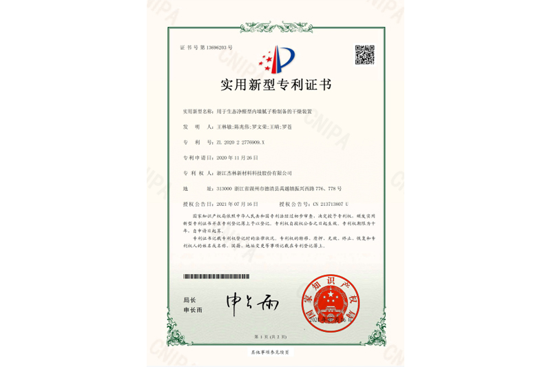 一種可凈化甲醛的內墻防水膩子粉加工用防堵塞研磨裝置-證書