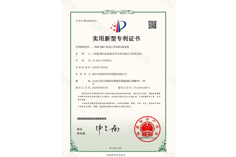 一種耐水膩子粉加工用雜質去除裝置-證書